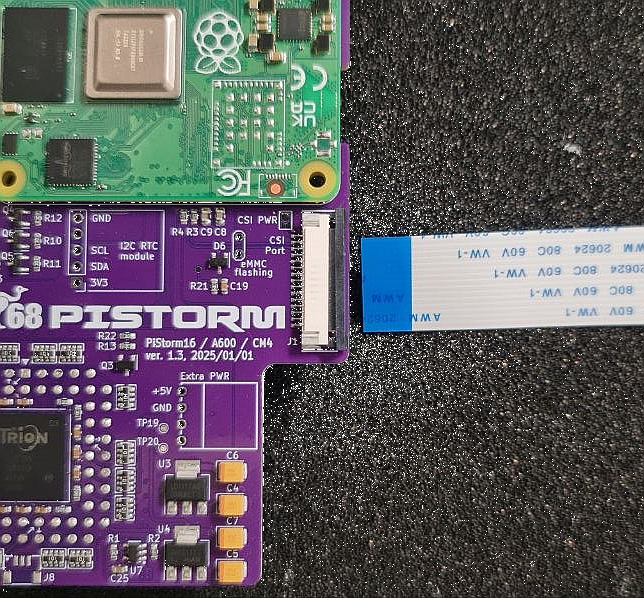 An additional extension for Pistorm 600/Pistorm16 in the form of a ScanDubler. Its task is to convert the image from Denise via the CSI port (camera) and convert it to an HDMI signal, which results in the pistorm working only and exclusively via the HDMI port. It works with any Raspberry used in pistorm, but Zero2 requires a different CSI 22-pin to 15-pin cable.